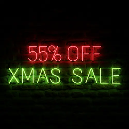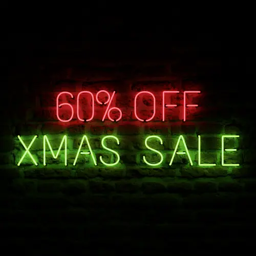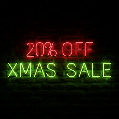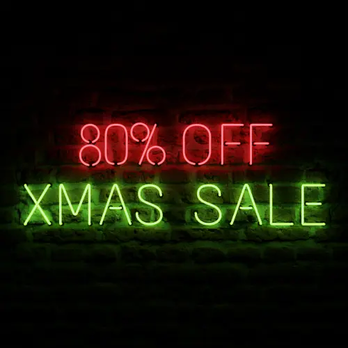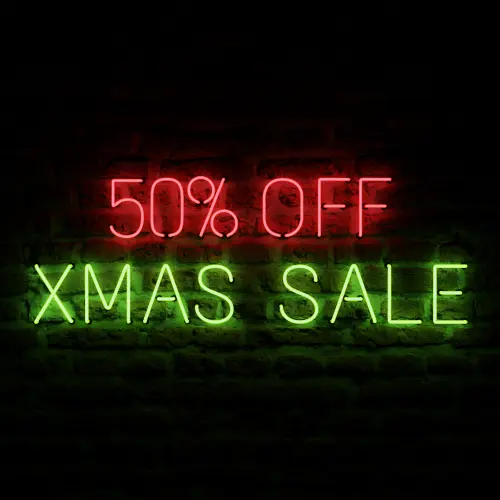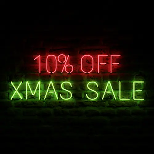 10 to 95 Percent Off Xmas Sale Neon Sign on Brick Wall