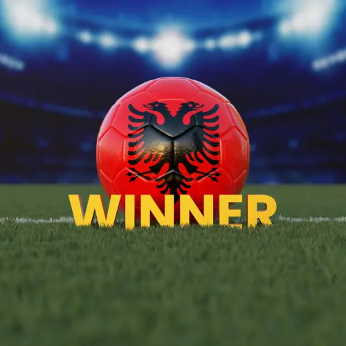 Flag of North Macedonia On Soccer Ball With WINNER Text