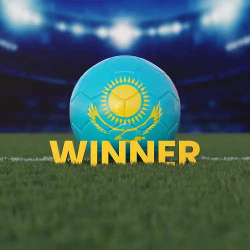 Flag of Kazakhstan On Soccer Ball With WINNER Text