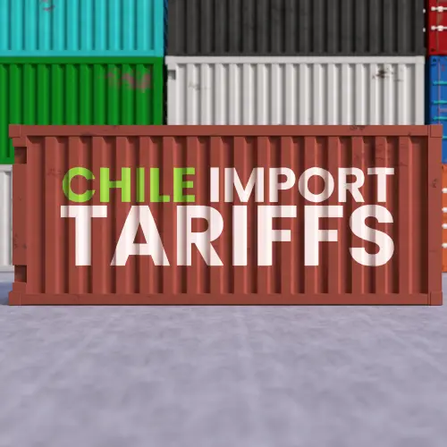 Chile Import Tariffs Label on Shipping Container Representing Global Trade Tensions