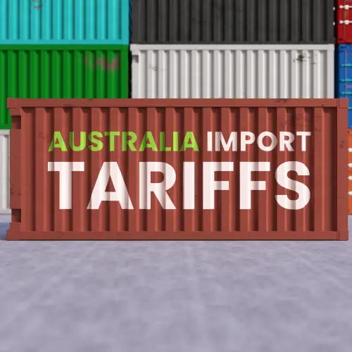 Australia Import Tariffs Label on Shipping Container Representing Global Trade Tensions