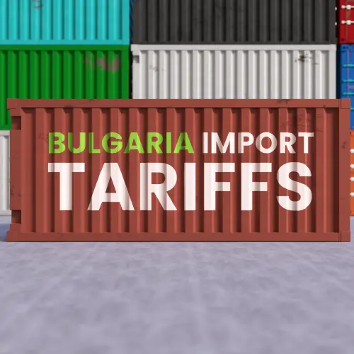Bulgaria Import Tariffs Label on Shipping Container Representing Global Trade Tensions
