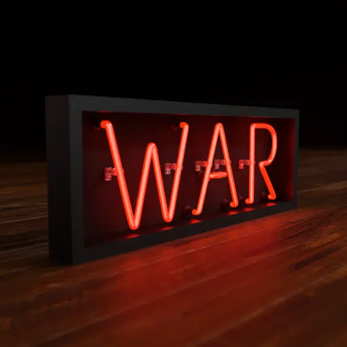 Red War Realistic Neon Sign With Dark Background
