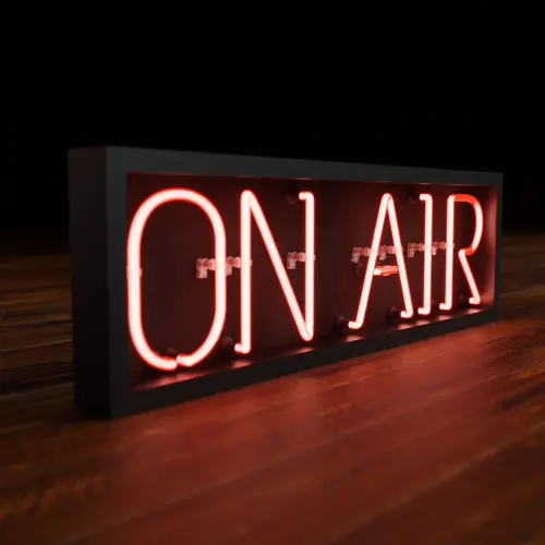 Red On Air Realistic Neon Sign With Dark Background