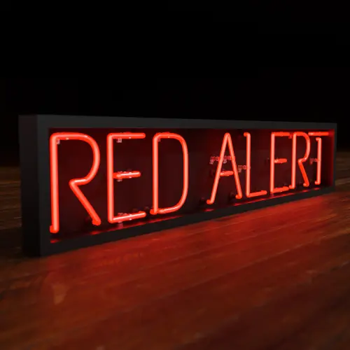 Red Red Alert Realistic Neon Sign With Dark Background