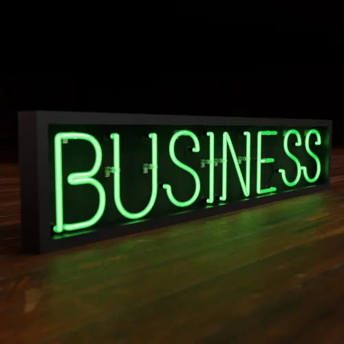 Green Business Realistic Neon Sign With Dark Background