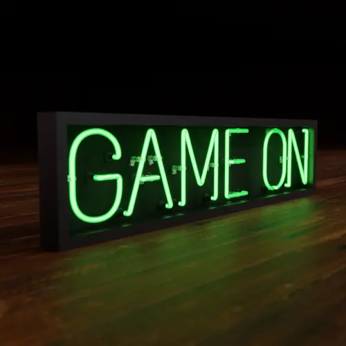 Green Game On Realistic Neon Sign With Dark Background