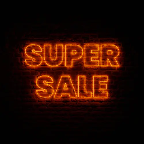 Red Neon Super Sale With Brick Background