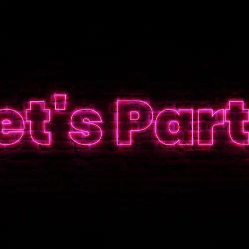 NEON Let's Party With Brick Background