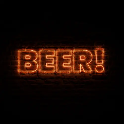 NEON Orange Beer With Brick Background