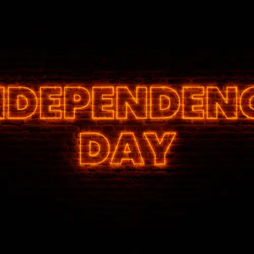 Red Neon Independence Day With Brick Background