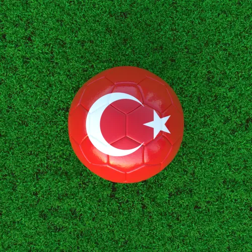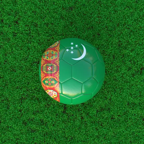 Flag Of Turkmenistan On Soccer Ball With Grass Background