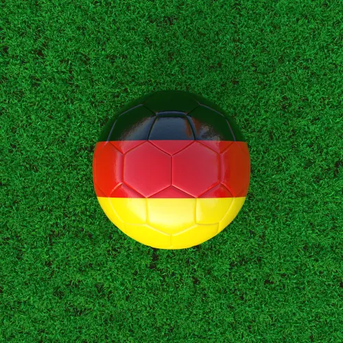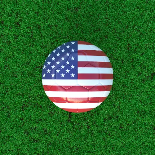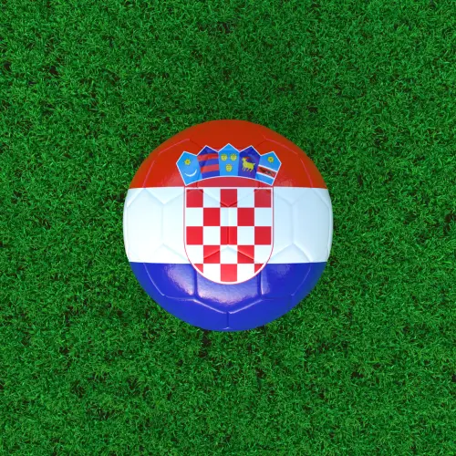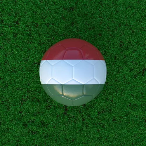 Flag of Hungary on a Soccer Ball with a Grass Background
