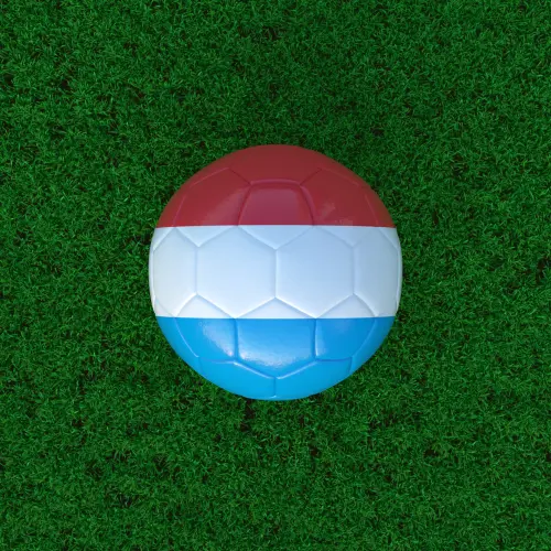 Flag of Luxembourg on a Soccer Ball with a Grass Background
