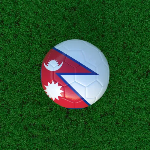 Flag of Nepal on a Soccer Ball with a Grass Background