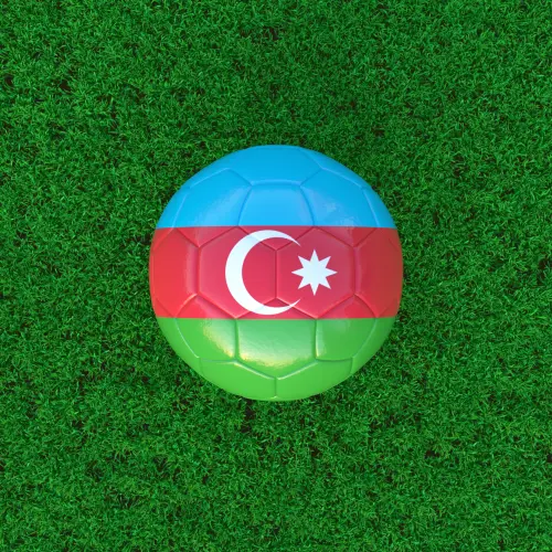 Flag Of Azerbaijan On Soccer Ball With Grass Background