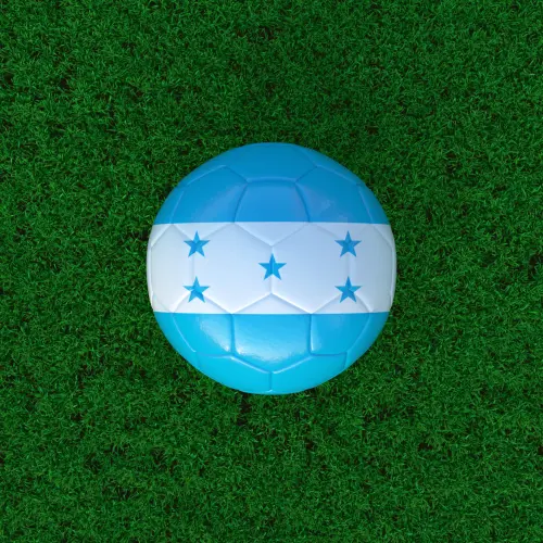 Flag of Honduras on a Soccer Ball with a Grass Background