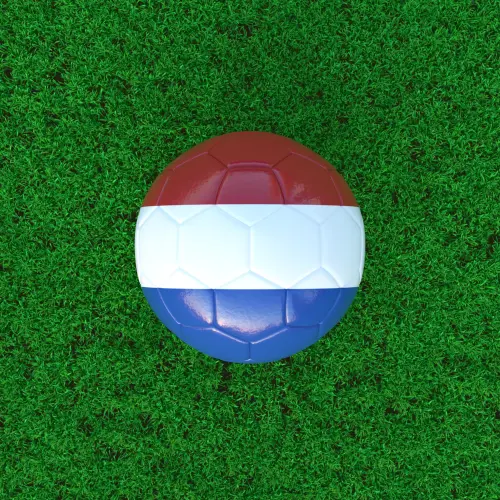 Flag Of Netherlands On Soccer Ball With Grass Background