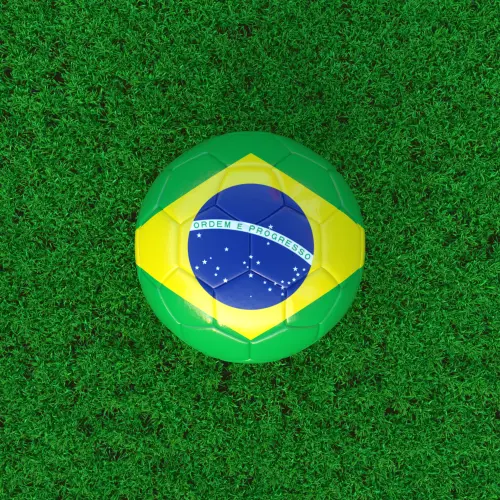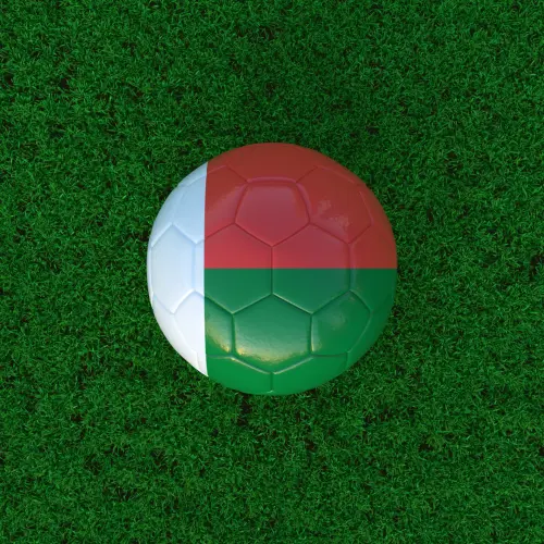 Flag of Madagascar on a Soccer Ball with a Grass Background