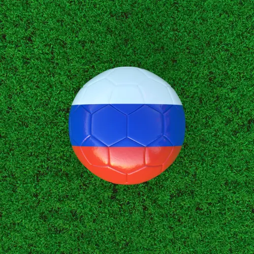Flag Of Kazakhstan On Soccer Ball With Grass Background