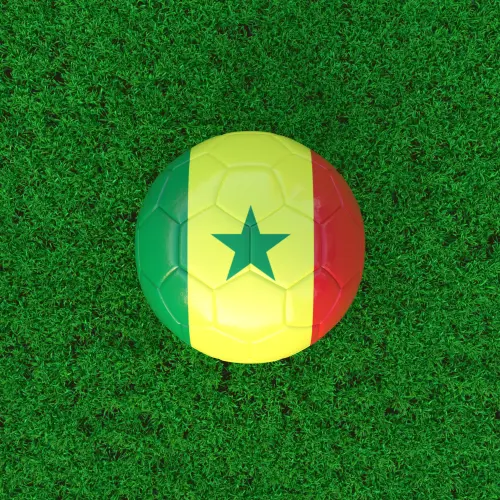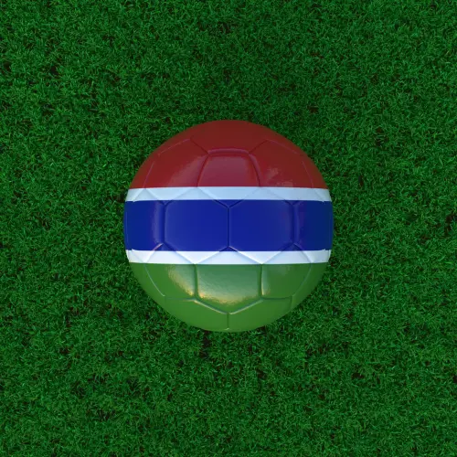 Flag of The Gambia on a Soccer Ball with a Grass Background
