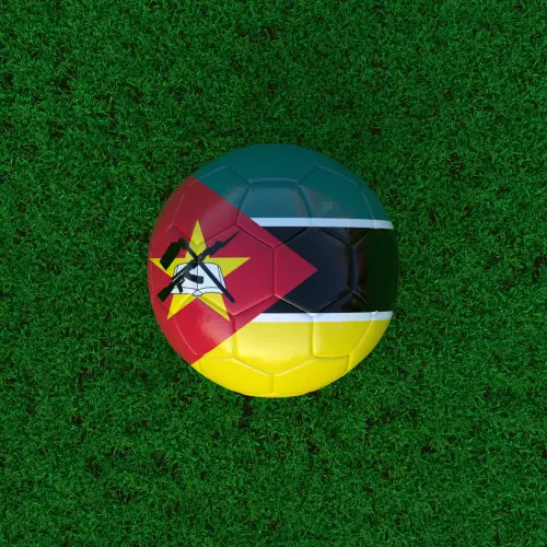 Flag of Mozambique on a Soccer Ball with a Grass Background