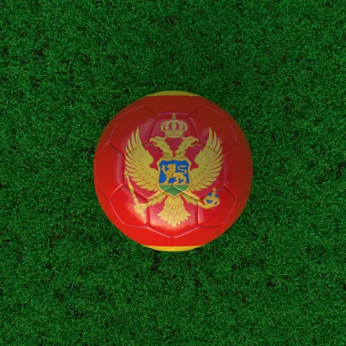 Flag of Montenegro on a Soccer Ball with a Grass Background