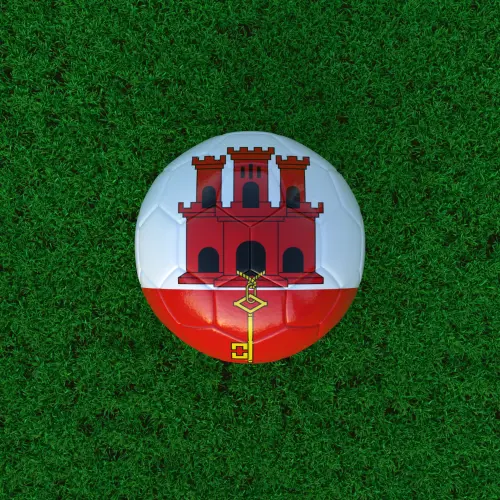 Flag of Gibraltar on a Soccer Ball with a Grass Background