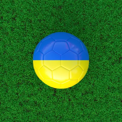 Flag Of Ukraine On Soccer Ball With Grass Background