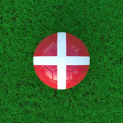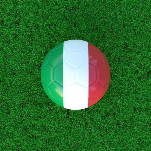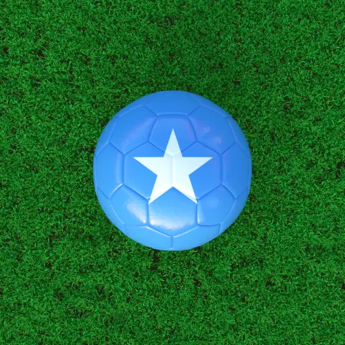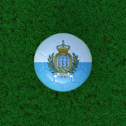 Flag of San Marino on a Soccer Ball with a Grass Background