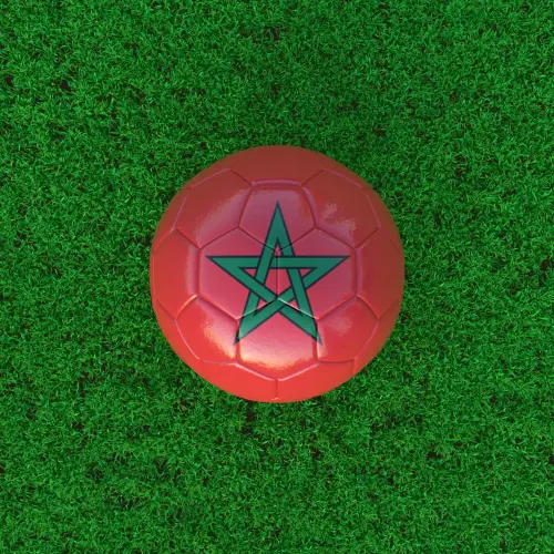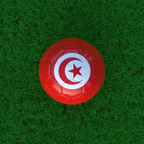 Flag of Tunisia on a Soccer Ball with a Grass Background