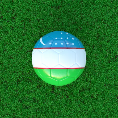 Flag Of Uzbekistan On Soccer Ball With Grass Background