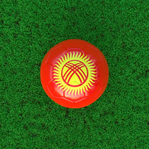 Flag Of Kyrgyzstan On Soccer Ball With Grass Background