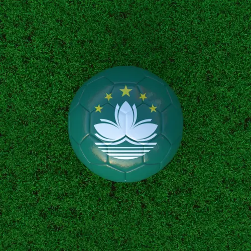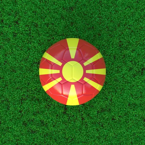 Flag Of North Macedonia On Soccer Ball With Grass Background