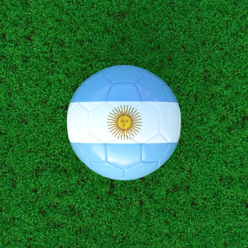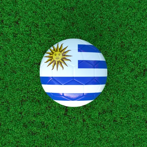 Flag Of Uruguay On Soccer Ball With Grass Background