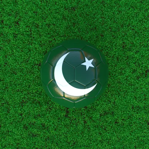 Flag Of Pakistan On Soccer Ball With Grass Background