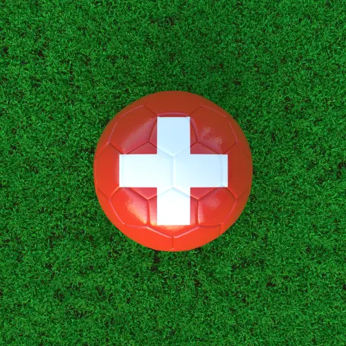 Flag Of Switzerland On Soccer Ball With Grass Background