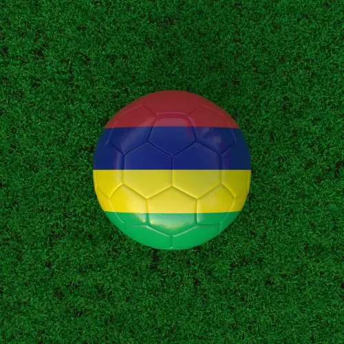 Flag of Mauritius on a Soccer Ball with a Grass Background