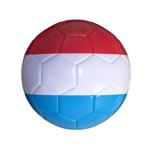 Flag of Luxembourg on a Soccer Ball with a White Background