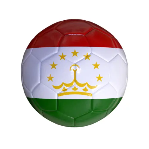 Flag of Tajikistan on a Soccer Ball with a White Background