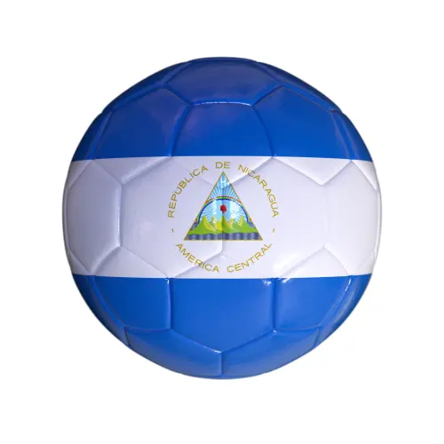 Flag of Nicaragua on a Soccer Ball with a White Background