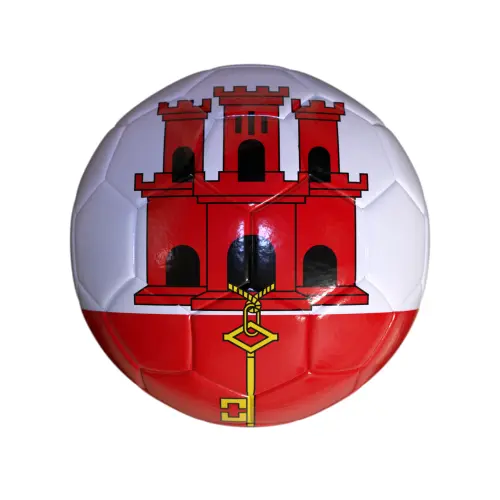 Flag of Gibraltar on a Soccer Ball with a White Background