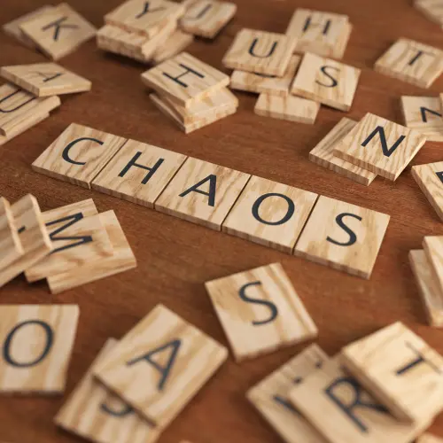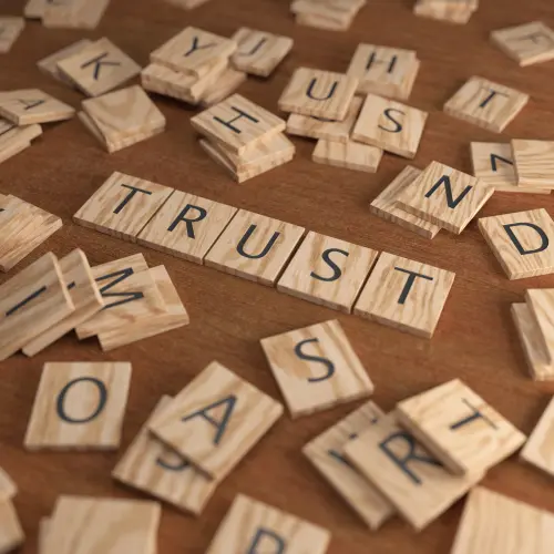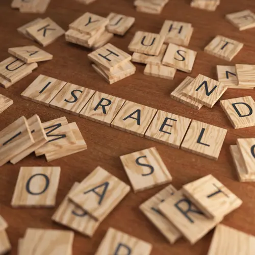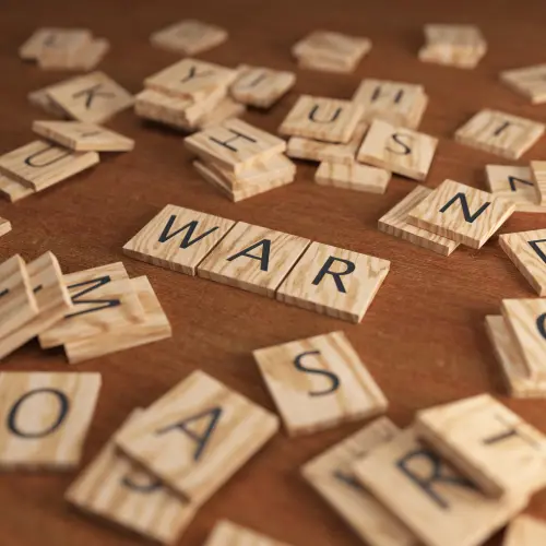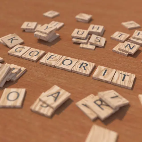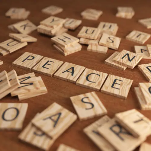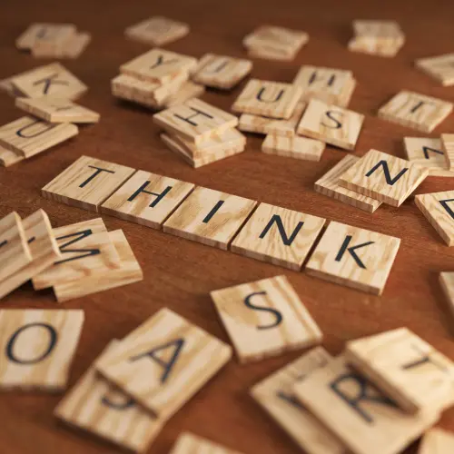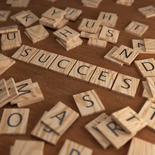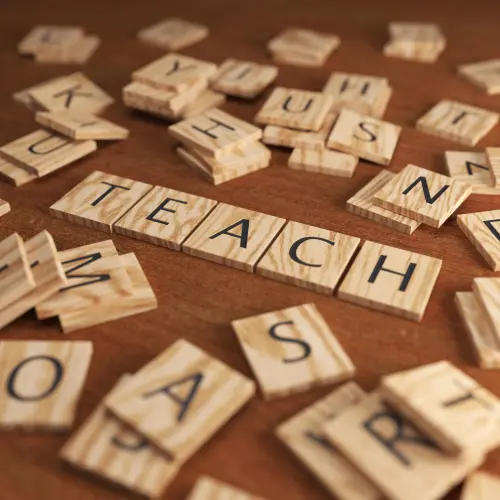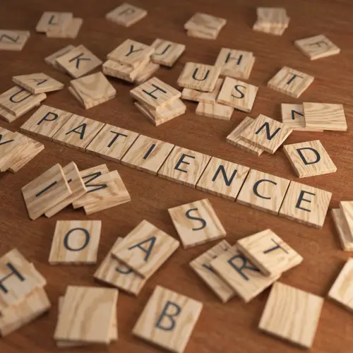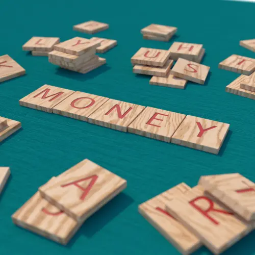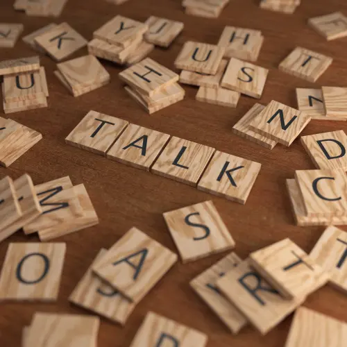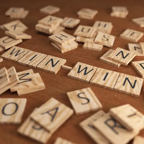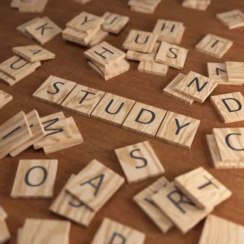 Wooden Scrabble Letter Tiles on Rustic Wood Background