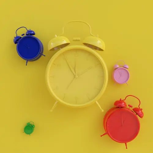 Yellow, Green, Pink ,Blue, Analog Clocks with Yellow Background-5
