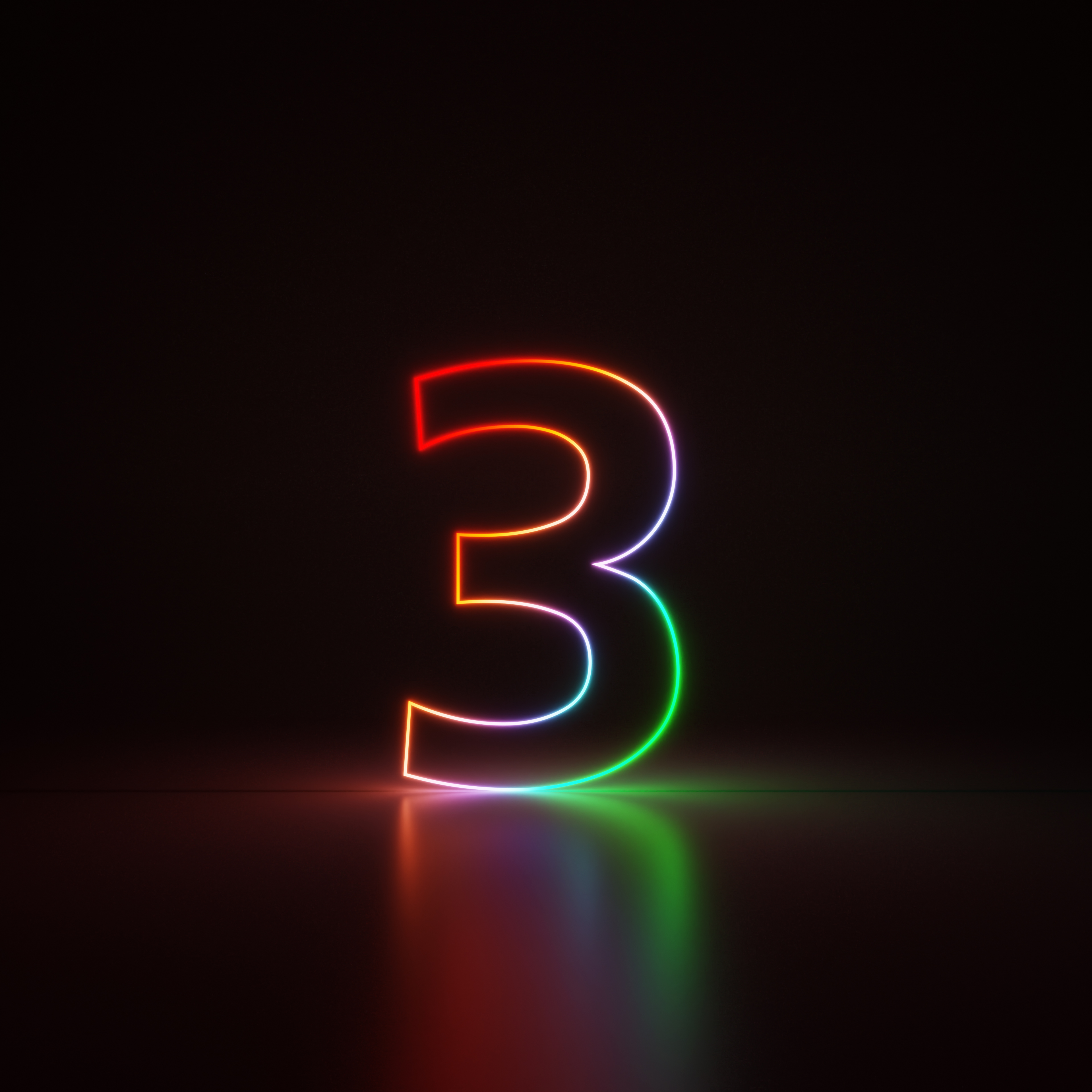 3d Render, Number 3 Glowing in the Dark, Gradient Neon Light