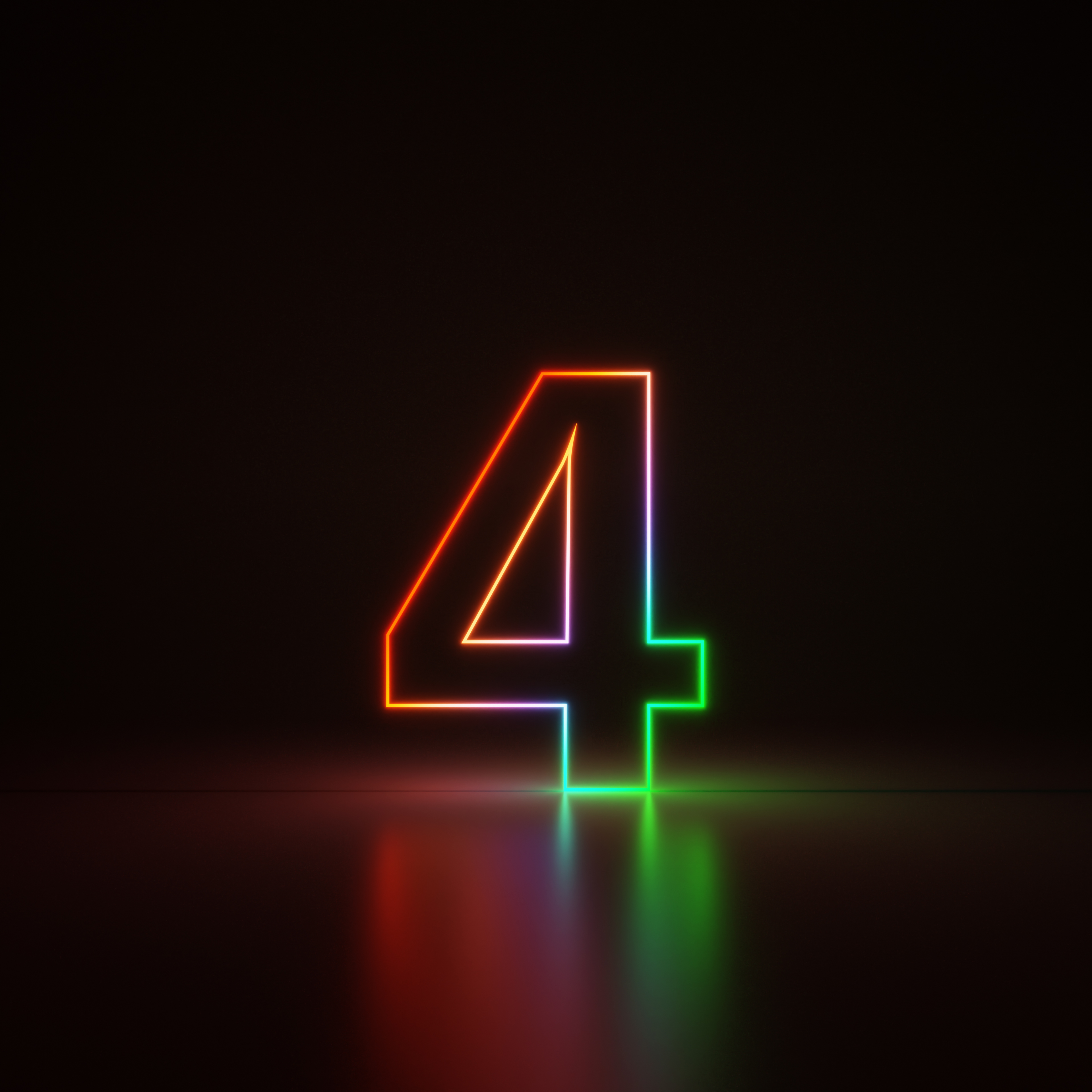 3d Render, Number 4 Glowing in the Dark, Gradient Neon Light