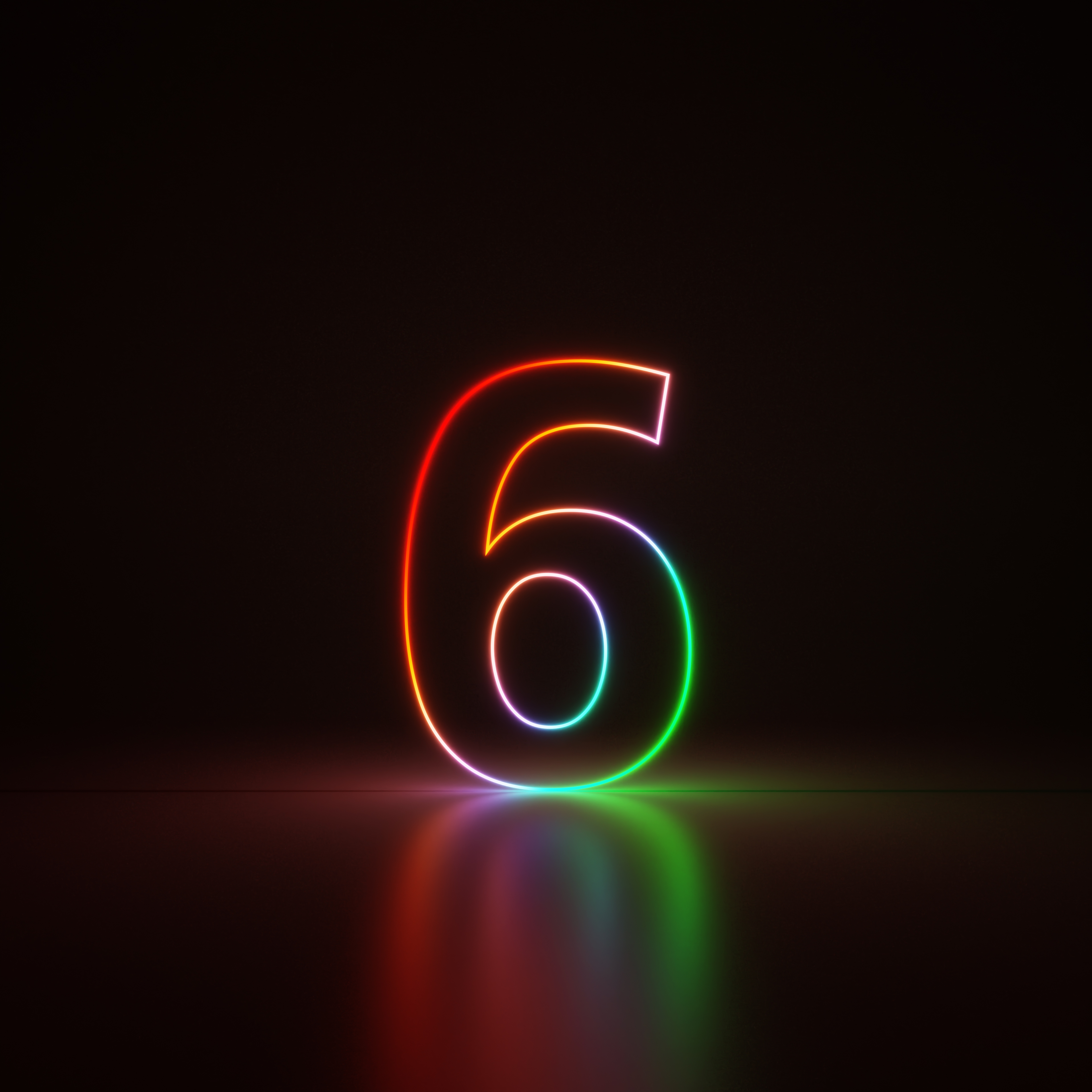 3d Render, Number 6 Glowing in the Dark, Gradient Neon Light
