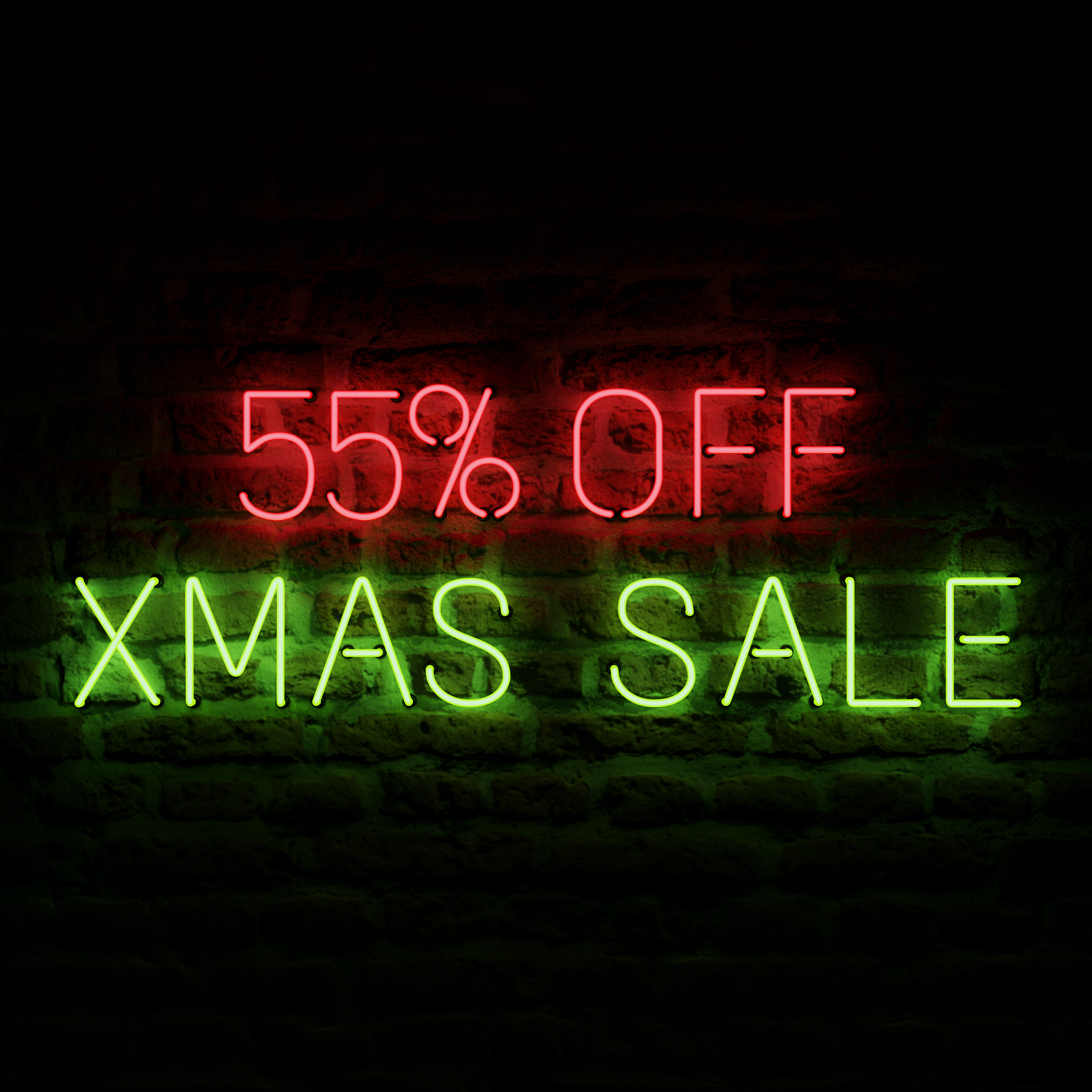 10 to 95 Percent Off Xmas Sale Neon Sign on Brick Wall