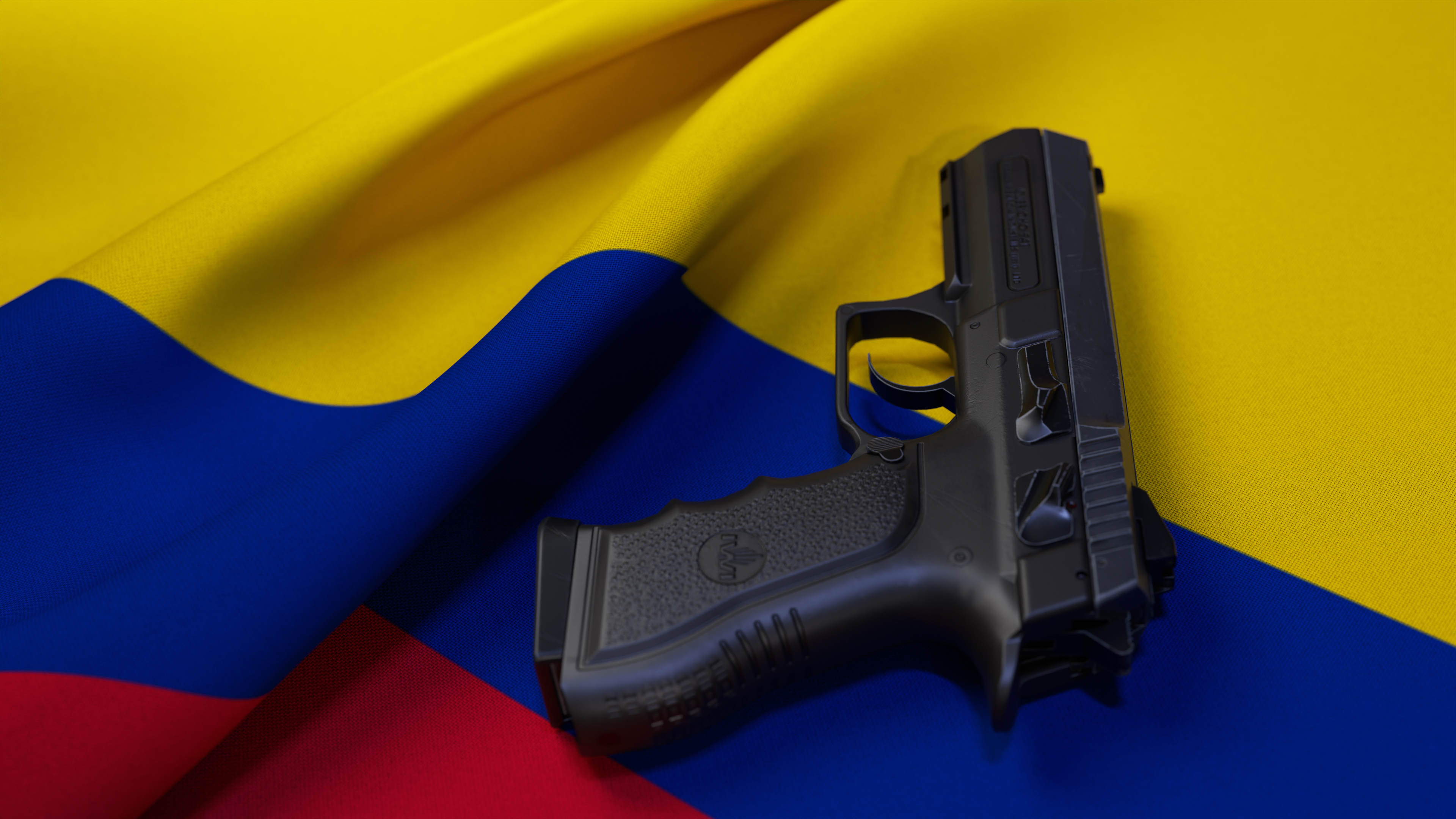 A black pistol on the flag of Colombia