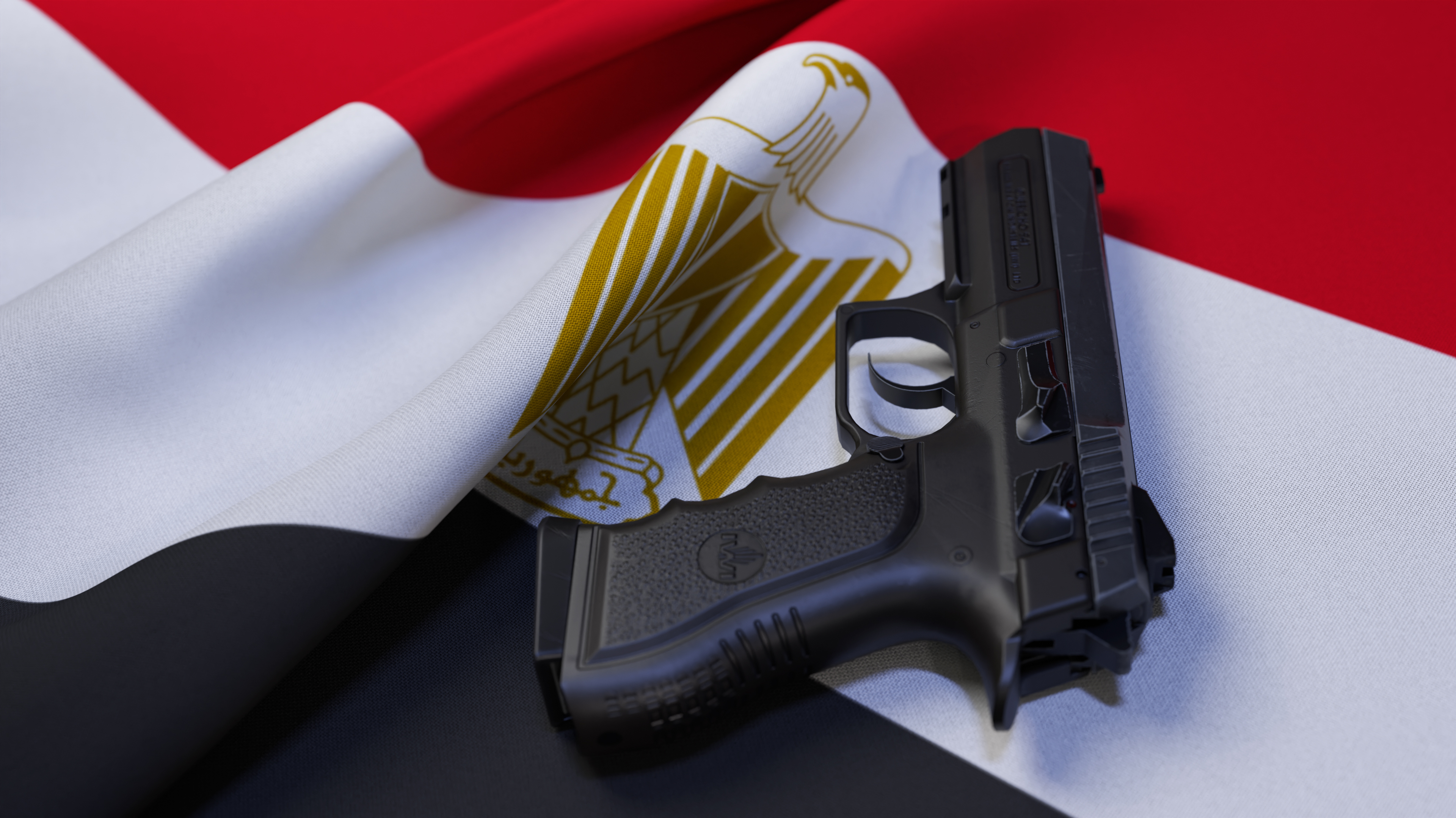 A black pistol on the flag of Egypt